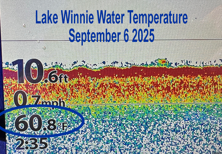 Image of graph screen showing Lake Winnie water temperature on September 6, 2025