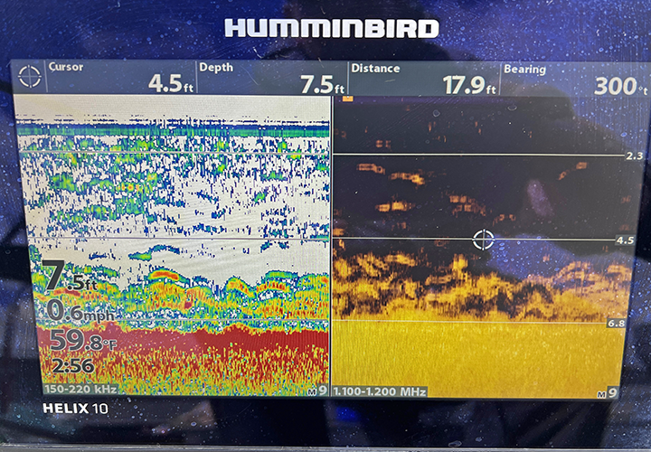 Summer is gone and fall rolls into the Lake Winnie region with vengeance. Since our last report, surface water temperatures have declined 10 degrees on average, more than that in select areas. Revealed on the screen of this fisherman’s Humminbird graph, 60.8 degrees was the surface temperature on Winnibigoshish near Stony Point on Saturday. For a moment, a reading of 59.8 degrees flashed across the screen, shown in a separate photo below.